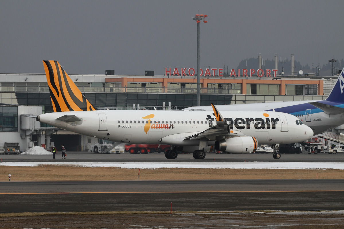 新千歳では夜発着の天津航空も、函館では日中の発着。