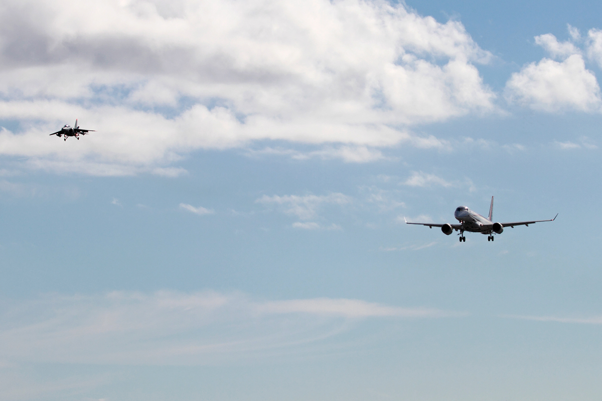 訓練空域での飛行を終え、MRJが戻って来ました。