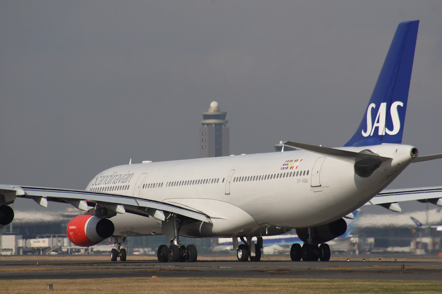 北海道の上空を通過していく、スカンジナビアのA340-300(OY-KBA)。