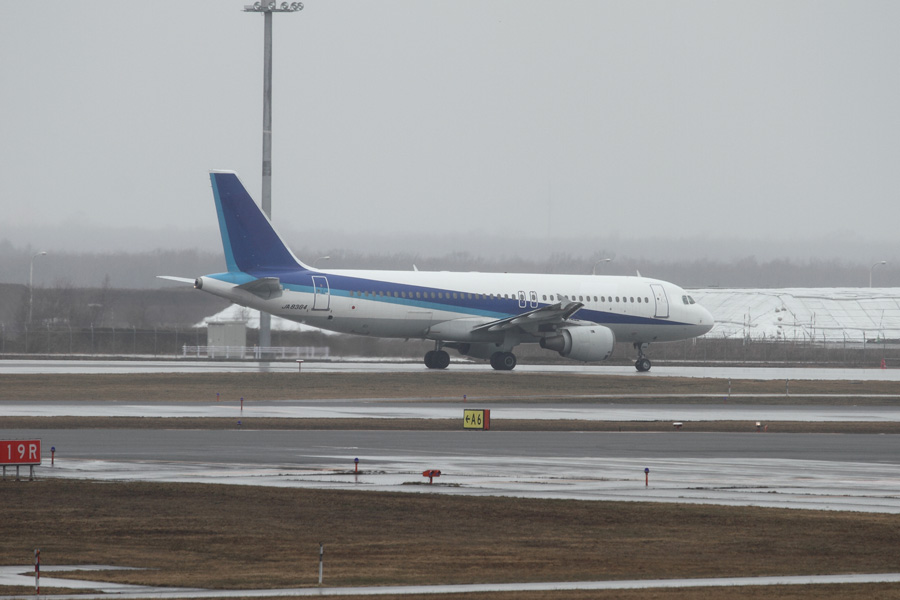 悪天候の中飛来したのは、ノータイトルのA320(・∀・;)