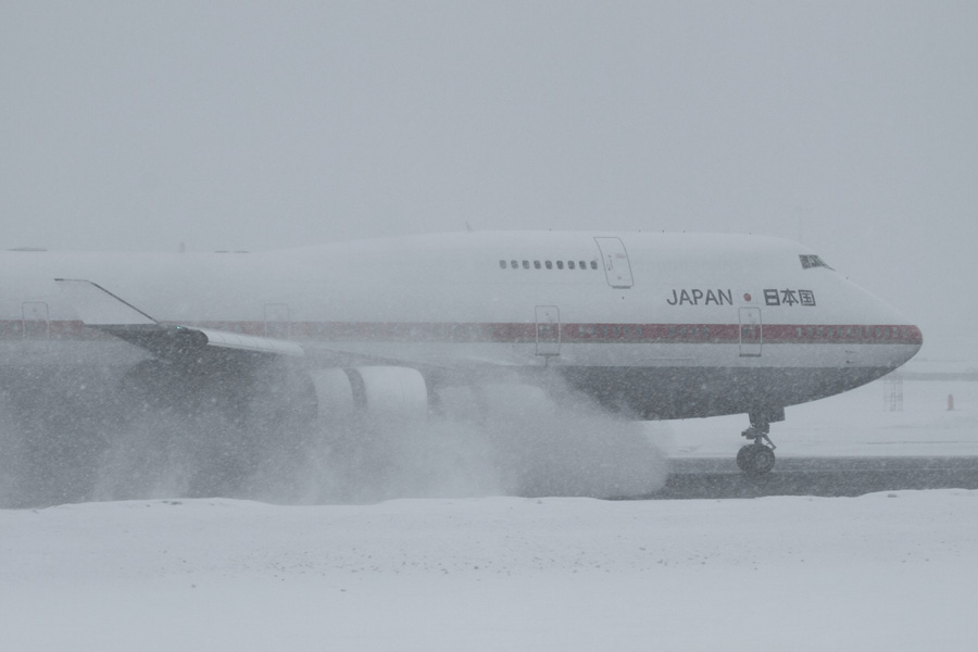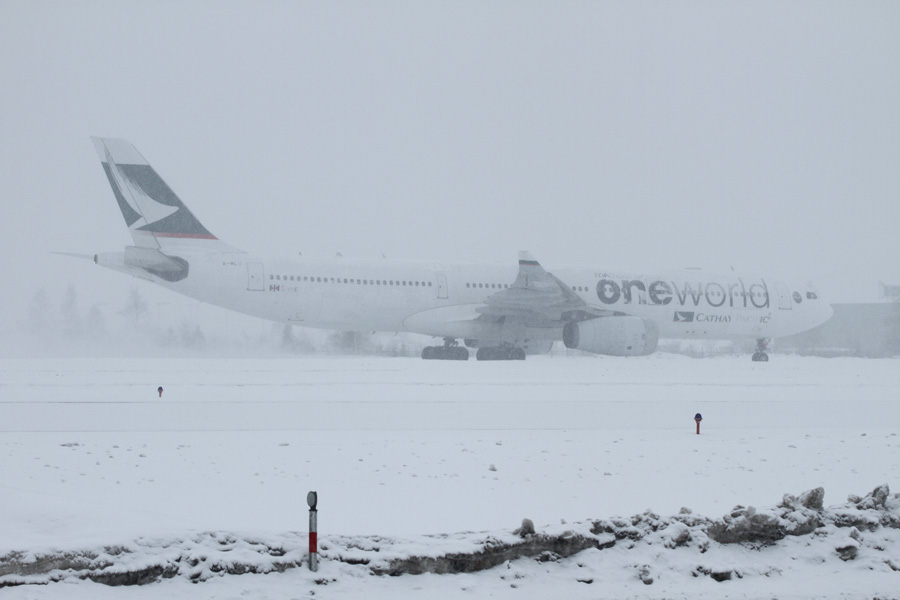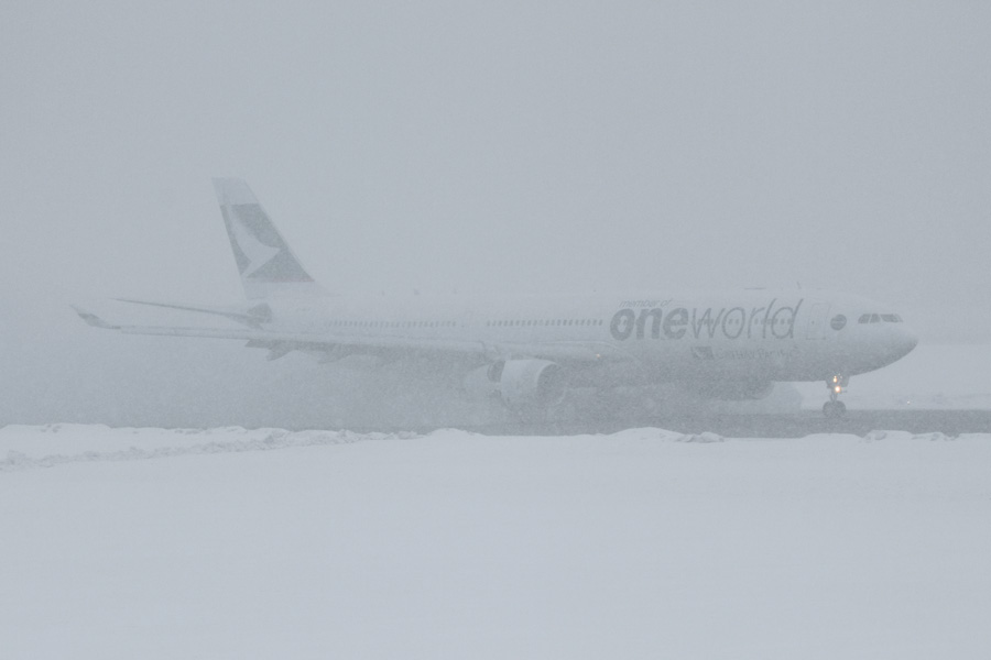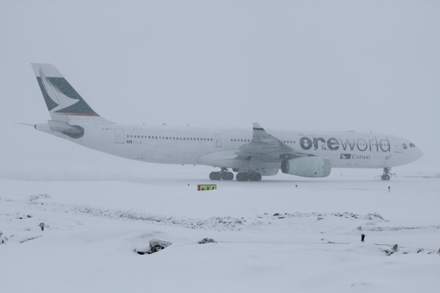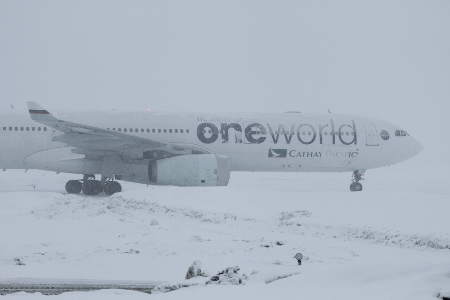 吹雪の中降りてきたのは、キャセイワンワールド!