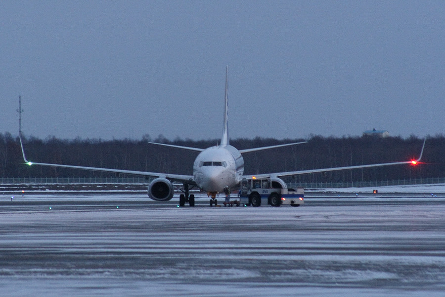 トーイングトラクタが付く頃には、かなり暗くなっていました(>_<)