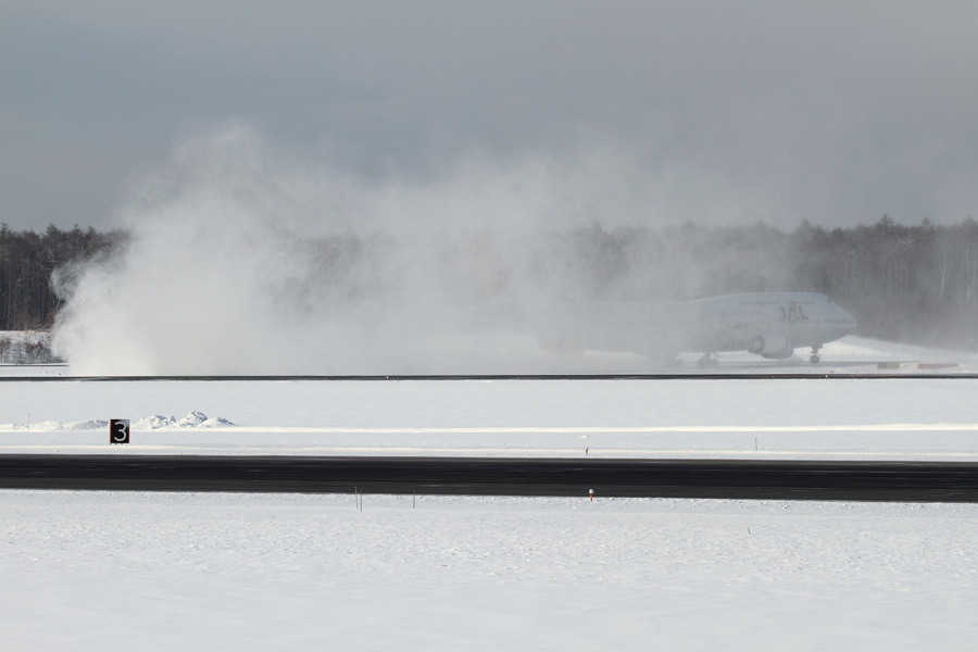 昨晩の大雪で誘導路上には、まだ雪が・・・
