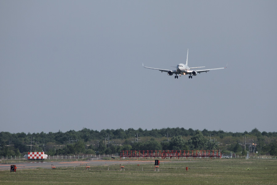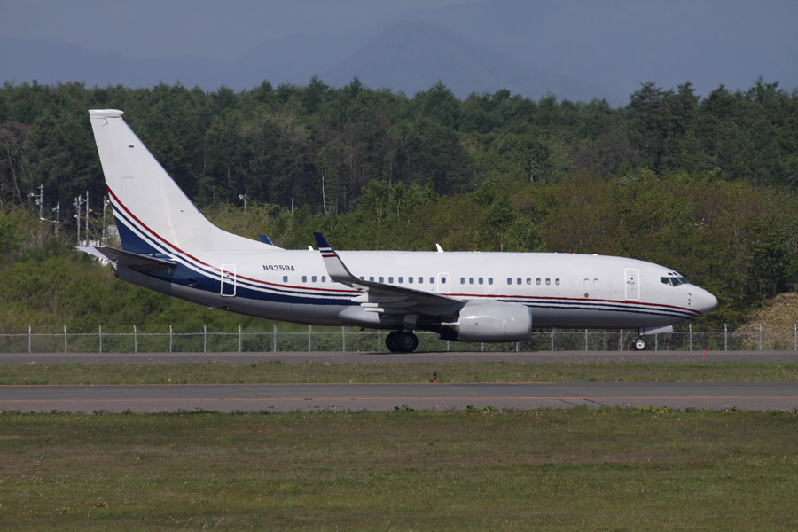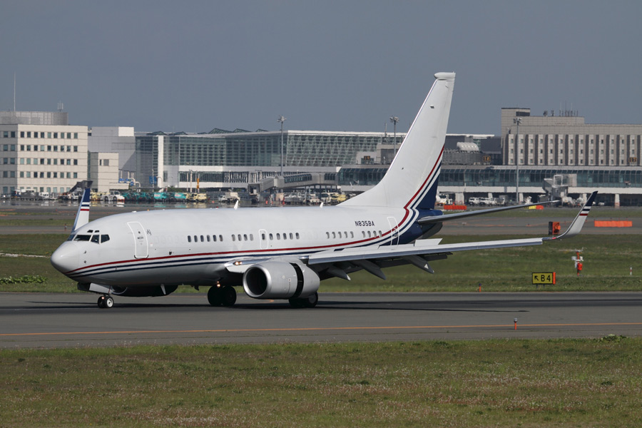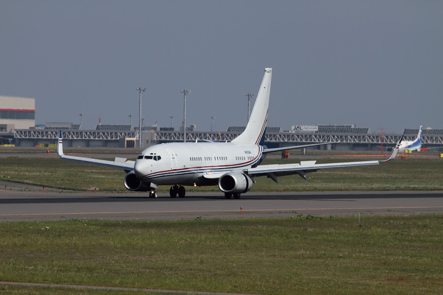 以前にも、レジ違いの機体が飛来していましたが、見られず・・・念願のBBJです(笑)