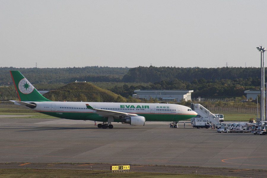 国際線スポットが埋まっていた為か、珍しく20番台スポットに入ったエバーの332。