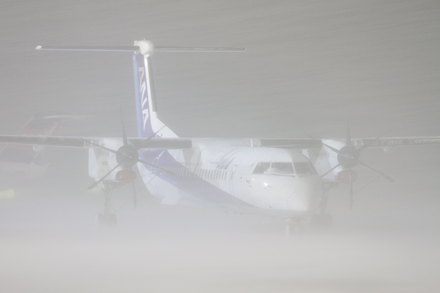 前日の7日は猛吹雪・・・14時頃から降り始め、それ以降は欠航・ダイバート祭に(´・ω・`)