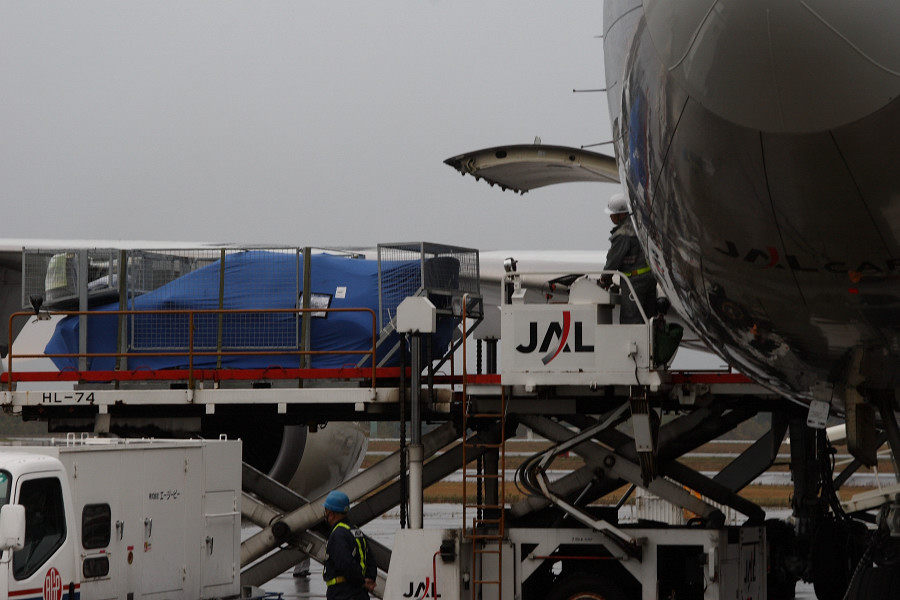26日から開催された、ラリージャパンで使用されるラリーカーを積んでロンドンから飛来した、B747-400F(JA402J)。