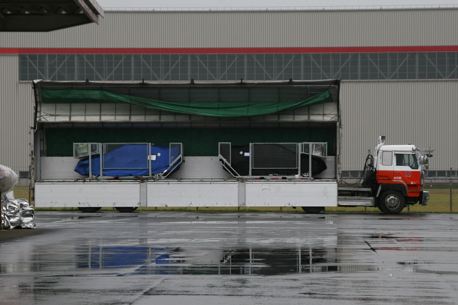 降ろされたラリーカーは、トラックに積み込まれて会場を行くようです(^_^;)
