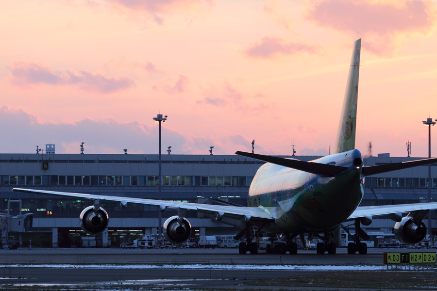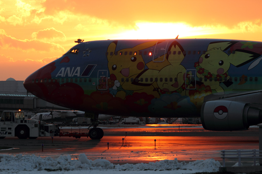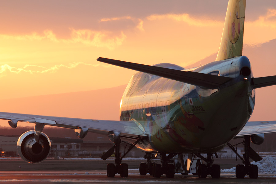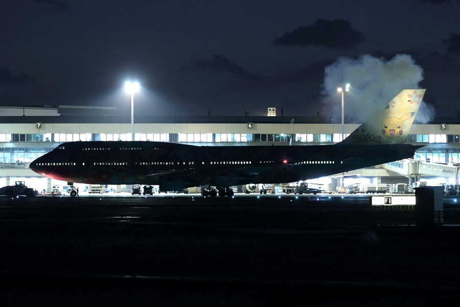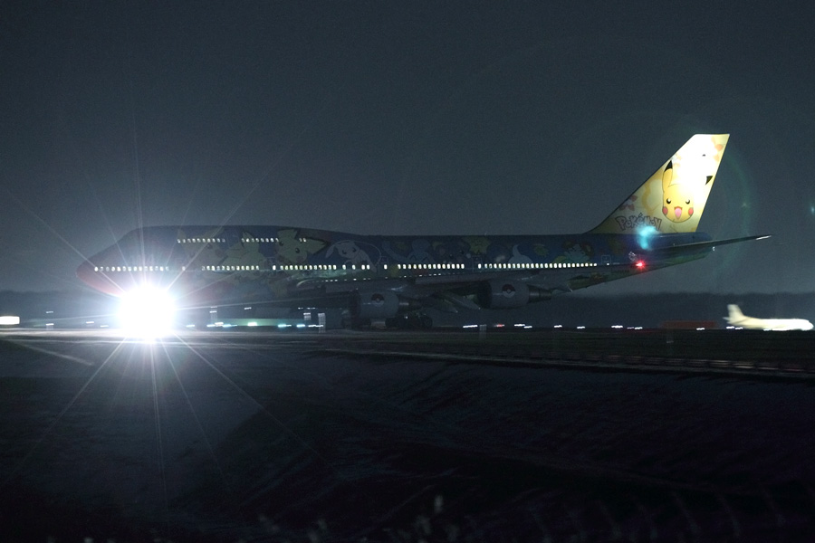 ANA55便で、今月末で退役予定とされている、「お花ジャンボ」が飛来。