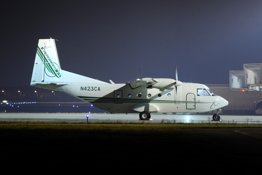 6日飛来のエバグリの傘! CASA-212(N423CA)。