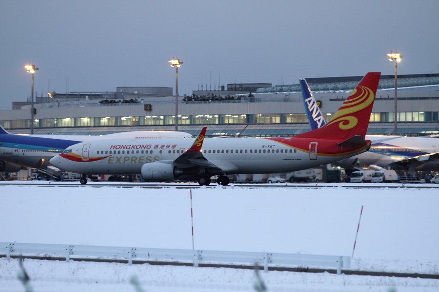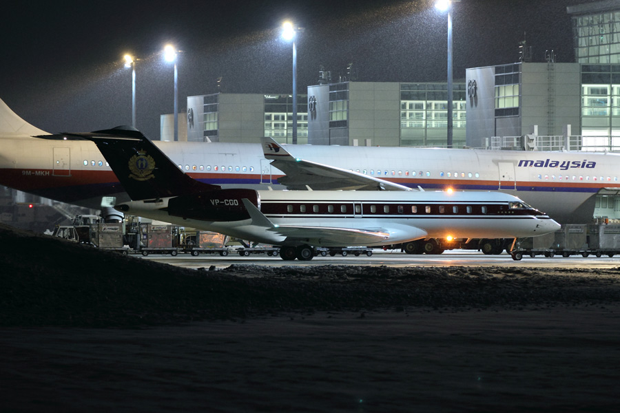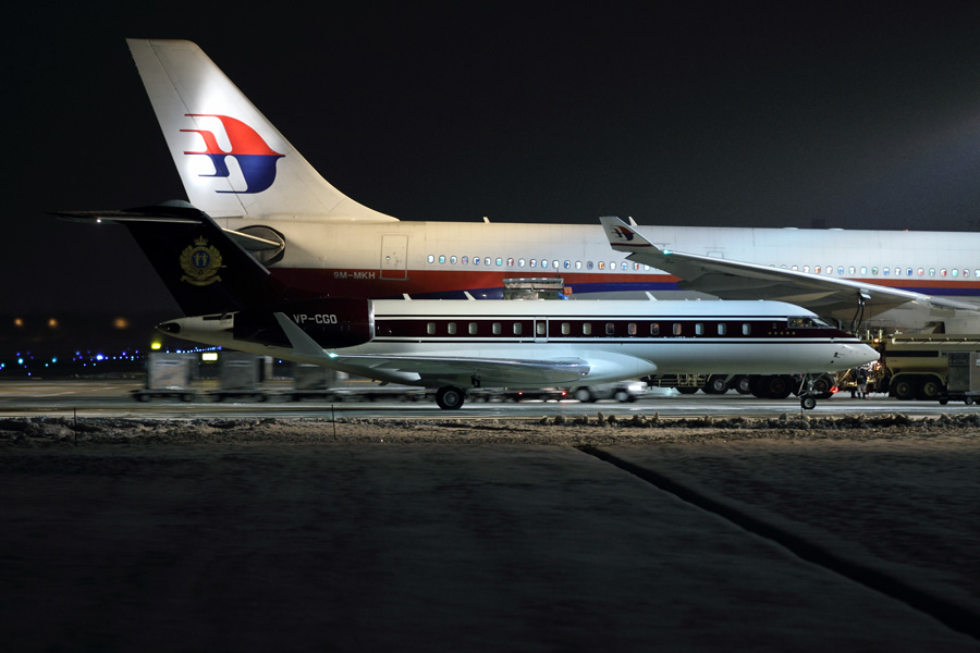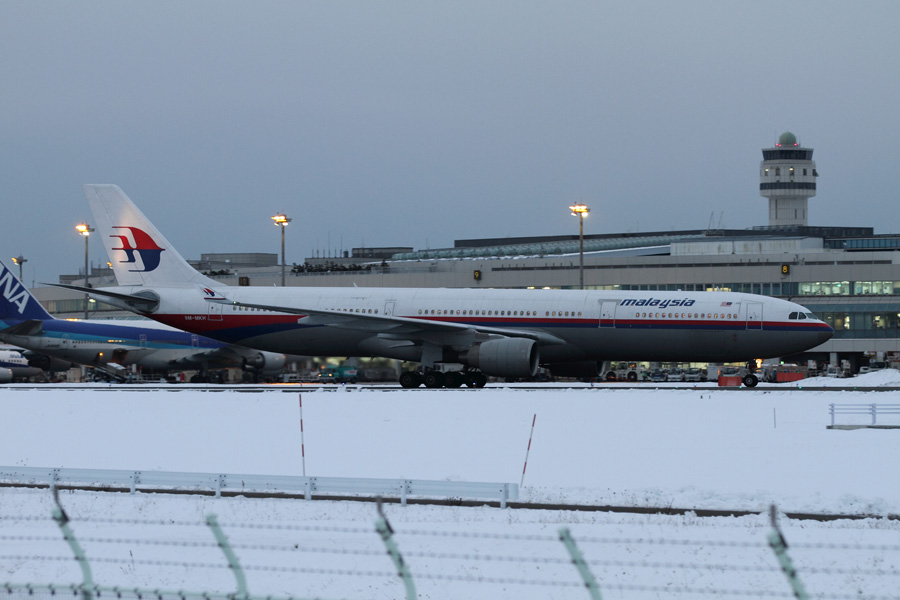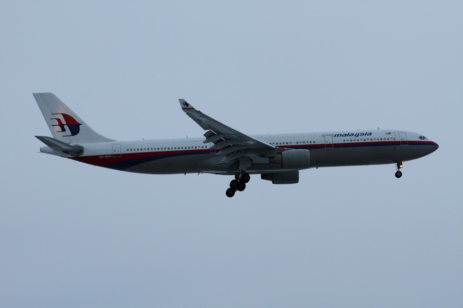 日没間近にマレーシアのチャーターが・・・曇って暗いです(^_^;)