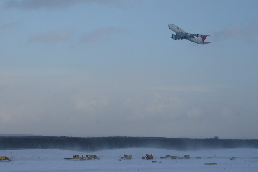 晴れ間が見えたり、また少し吹雪いたりの繰り返しで、R/W01Lの除雪作業も少し延びているようでした・・・