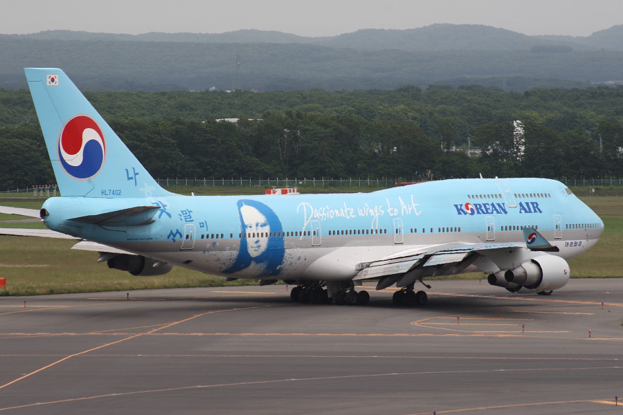 この塗装、今年2月に大韓航空が後援している、パリ・ルーブル博物館で韓国語案内サービスが開始された事を宣伝する為に登場。