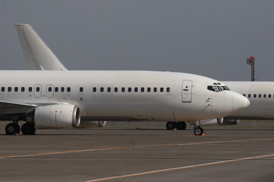 2日飛来し、ステイしていた、真っ白なB737・・・