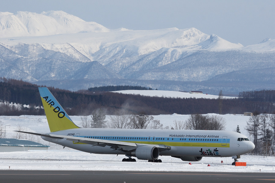 キレイな山々をバックに、東京からのエアドゥが(^^♪