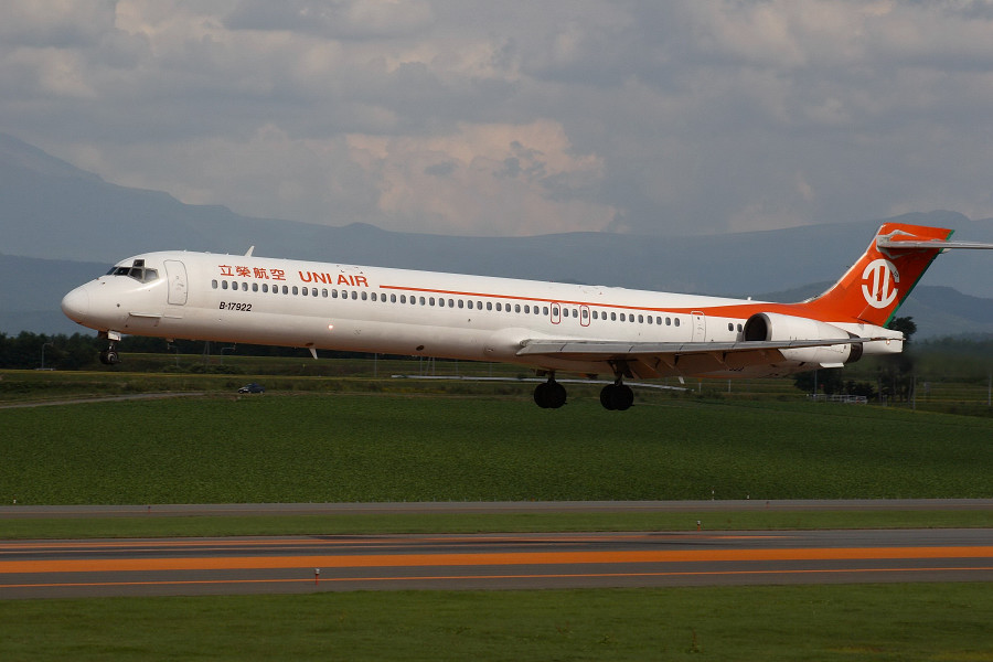B71608/1607便で台北から飛来した、ユニのMD-90(B-17922)。
