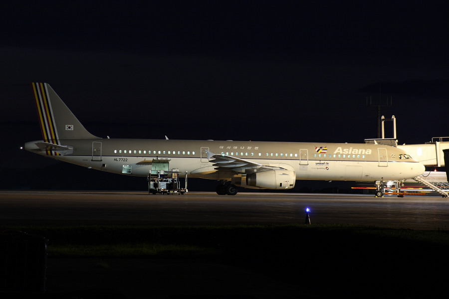 OZ1543便でソウルから飛来した、アシアナのA321-200(HL7722)。