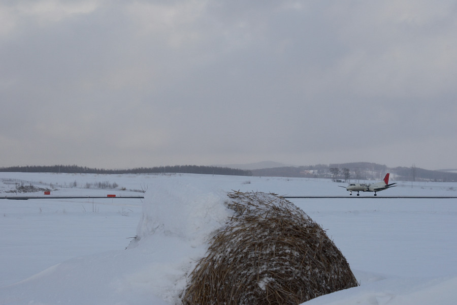 続いてのJALの降りは、この前もチャレンジした牧草ロールとの絡み(^_^;)
