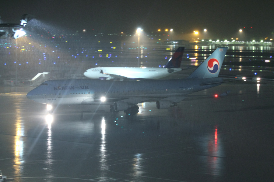 諦めずに?カメラ片手に飛行機に乗る手前の、55番スポットのPBB窓からSPを見てみると・・・