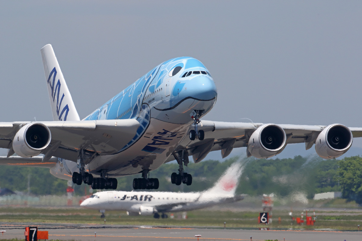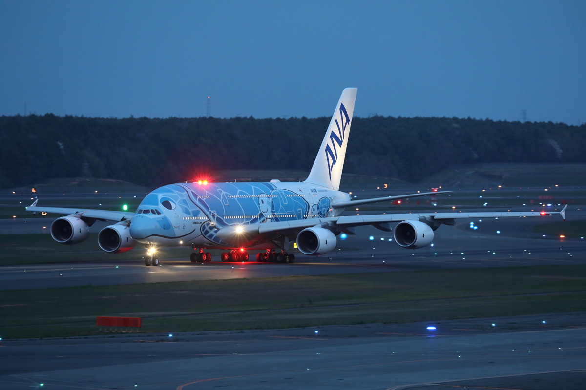 今回は慣熟飛行で飛来した、ANAのA380・FLYING HONU(フライングホヌ)の画像をまとめて・・・