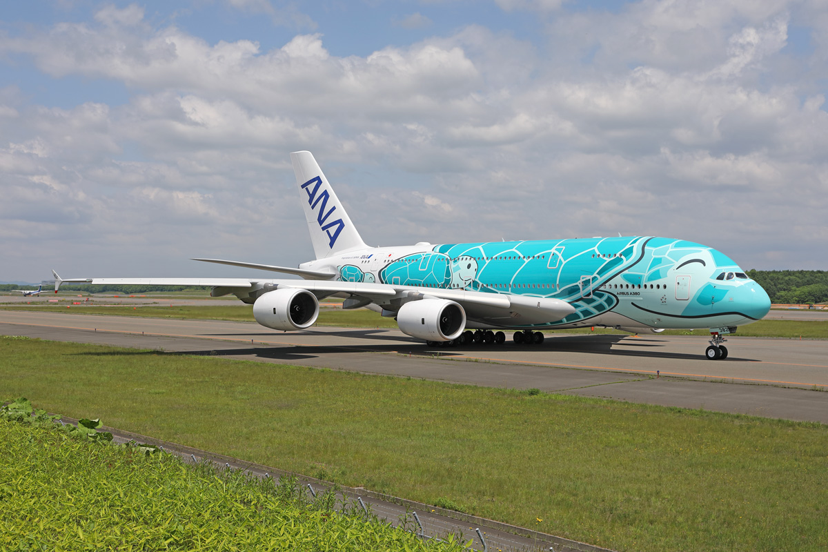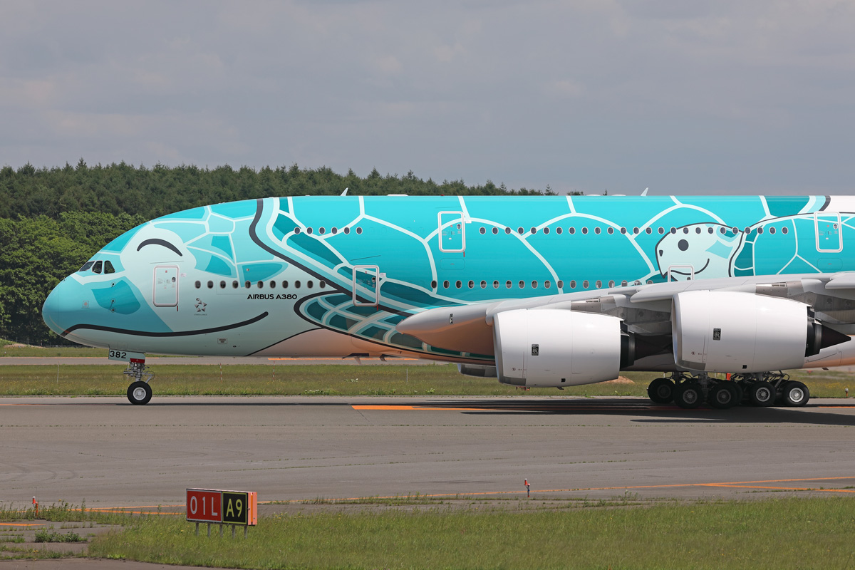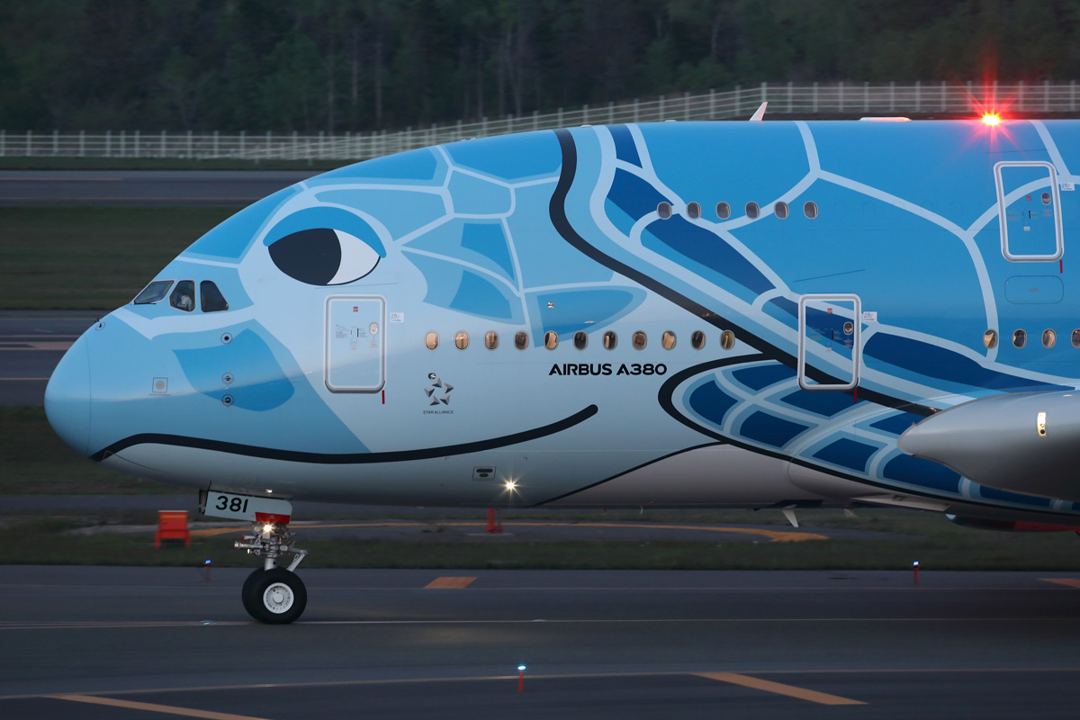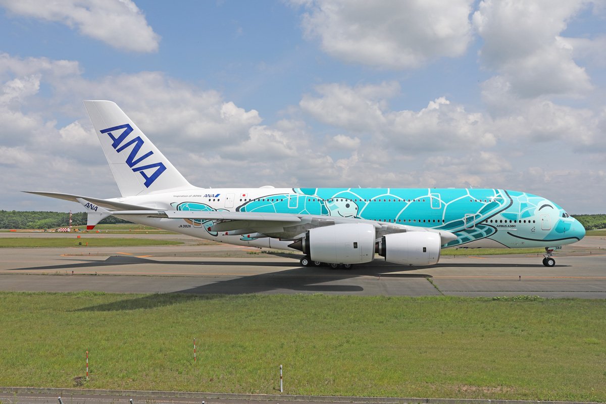 続いて、ANAのA380・FLYING HONU(フライングホヌ)2号機である、JA382Aの画像を・・・