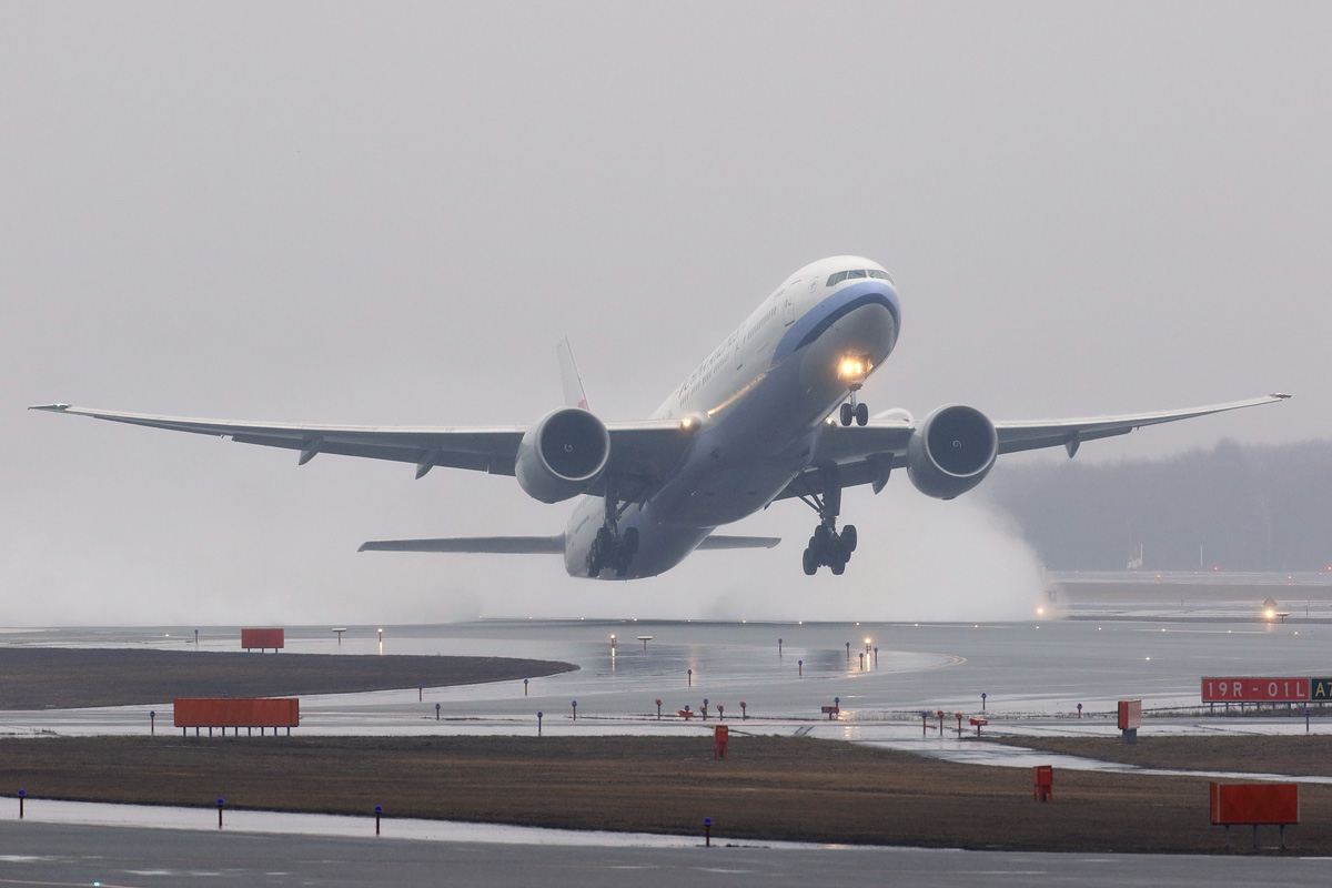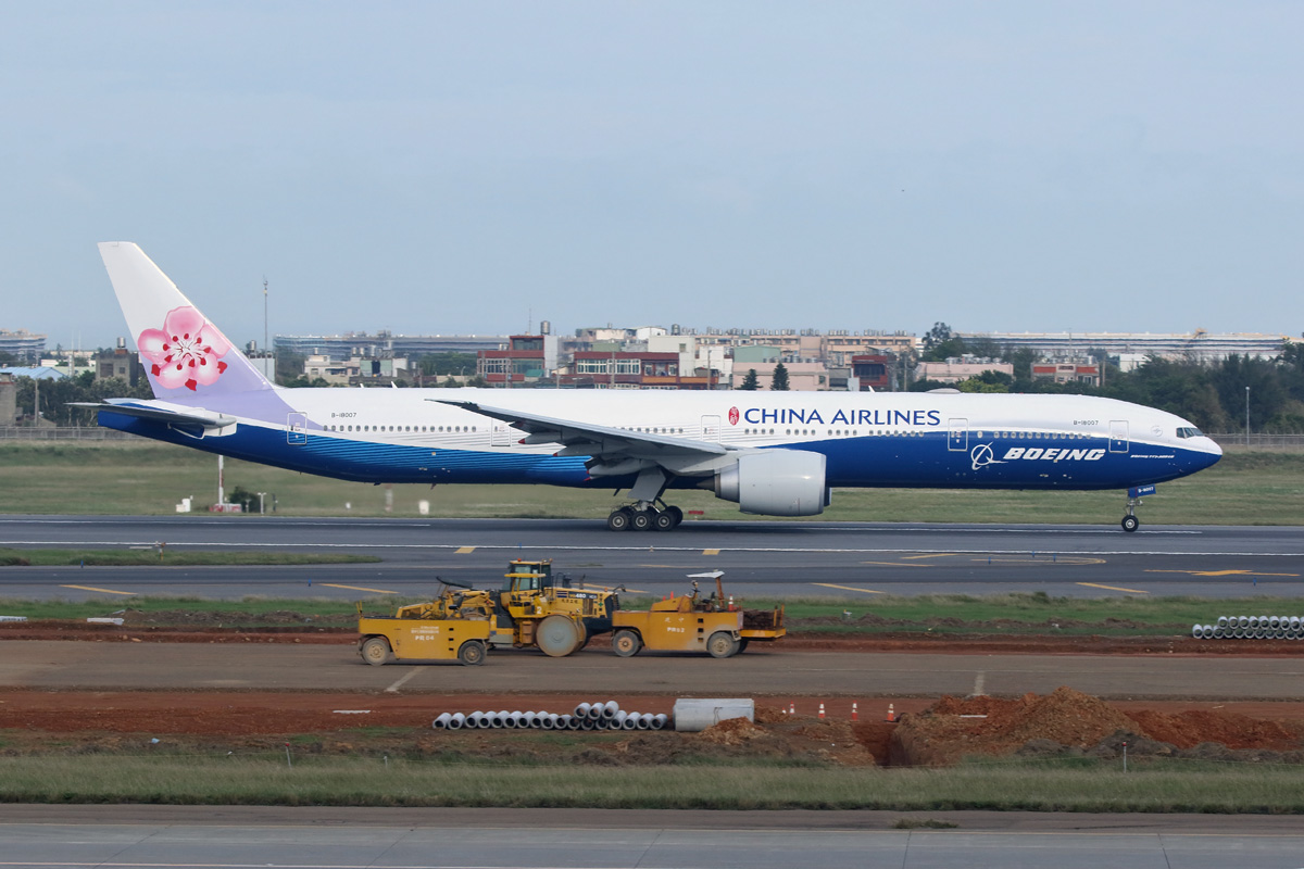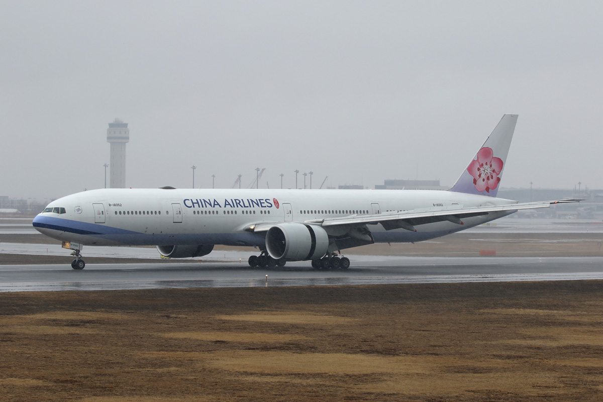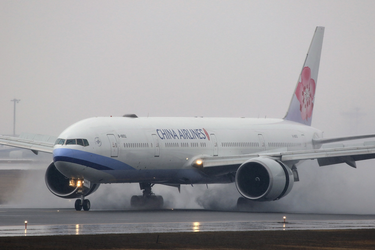生憎の雨の中、中華航空のトリプルが初飛来!