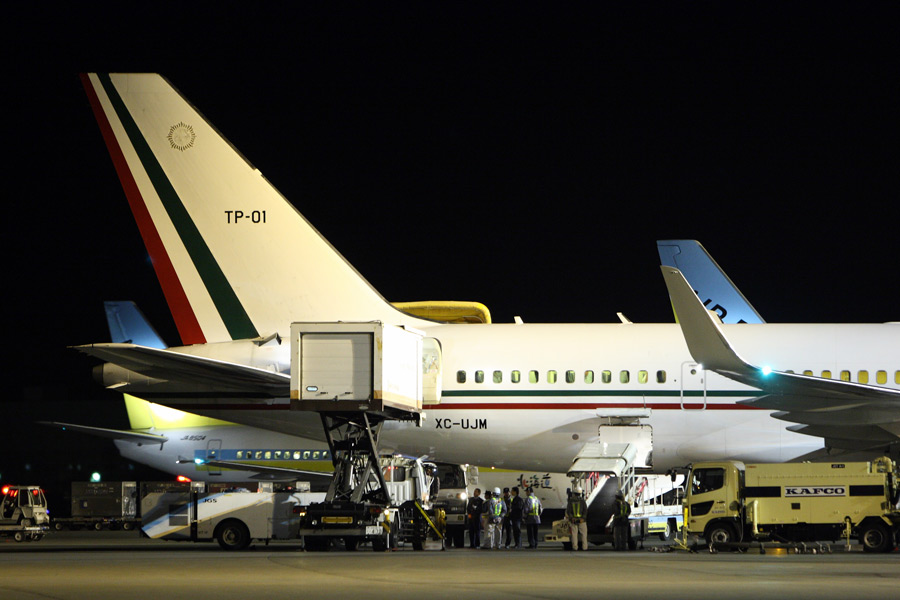 4日夜から5日朝にかけて、ANAのモヒカンジェット B767-300(JA602A)が飛来しました。