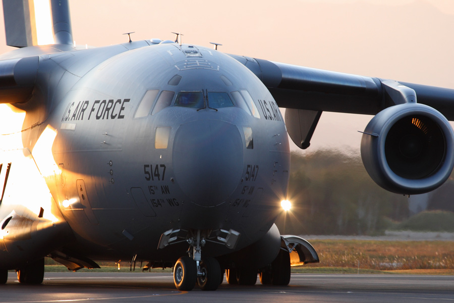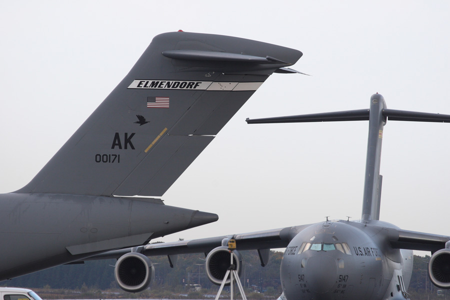 その支援機として、昼と夜にC-17A Globemaster III×2機(99-0170 AK、05-5147 HH)が空港側に飛来しました。