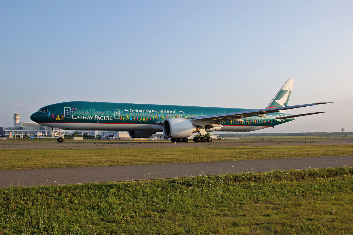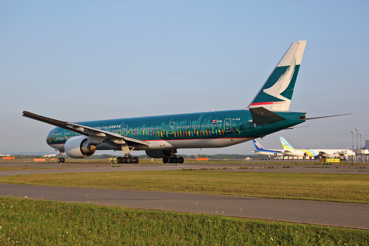 先代のB-KPFは一度も千歳に飛来せず(のはず?)。先日、新塗装のSpirit of Hong Kong (B-HNK)も運航を開始したので、千歳ではもう見れないかもと思っていました・・・