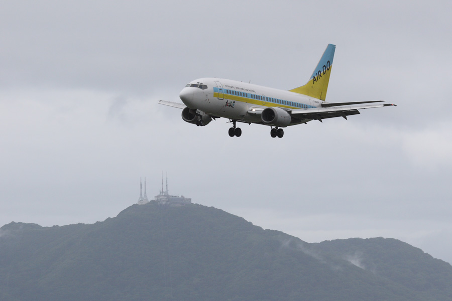 この日は、3便ある東京便の全てにB743が投入予定だったので、朝一便は函館山と絡めて・・・
