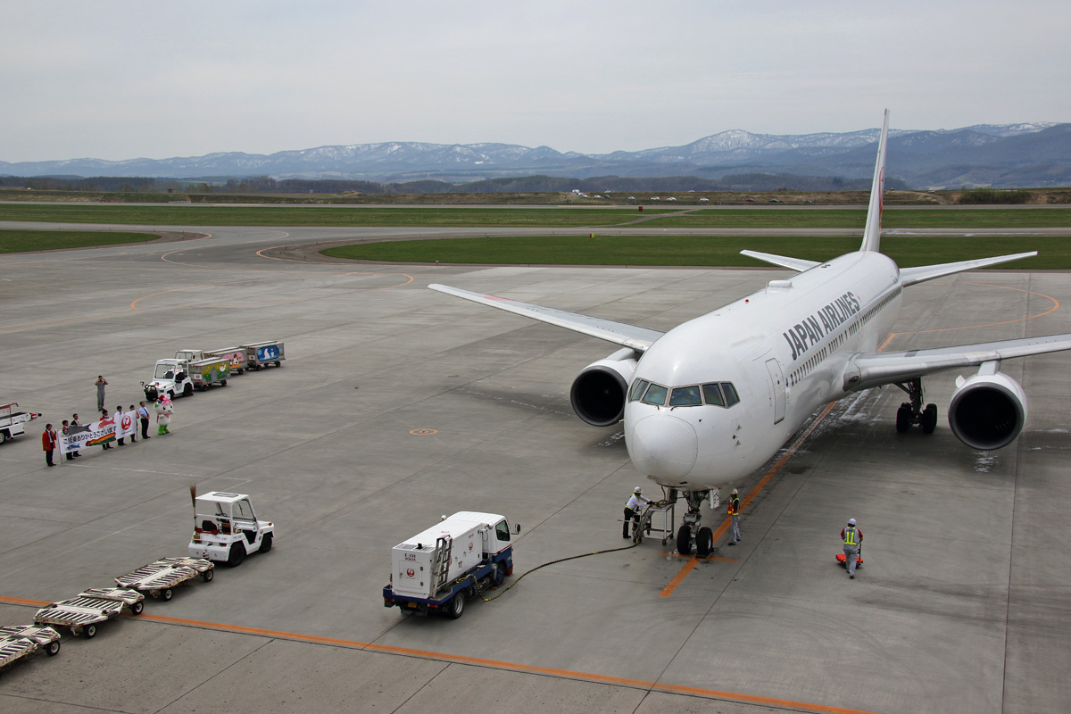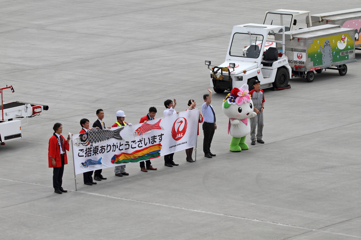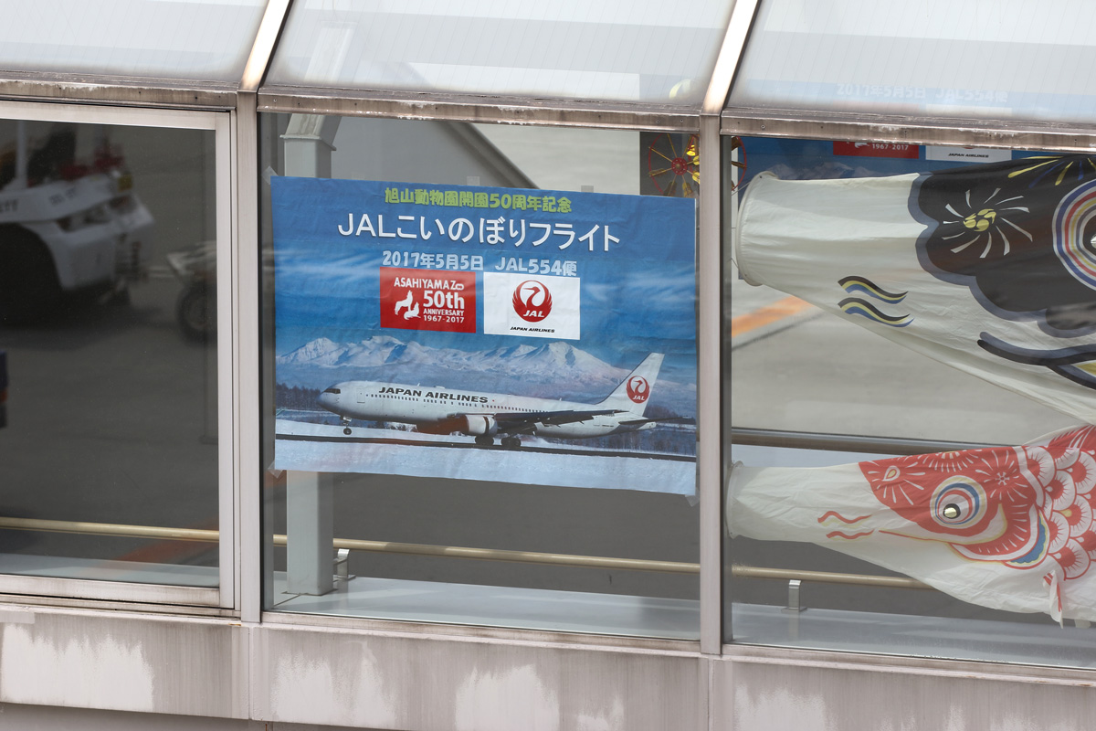 この日の東京~旭川便(JAL553/554便)は男性乗務員のみでの運航される「JALこいのぼりフライト」に充当されました!