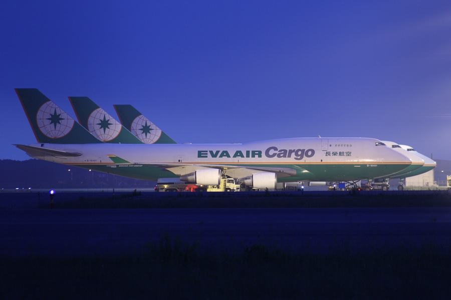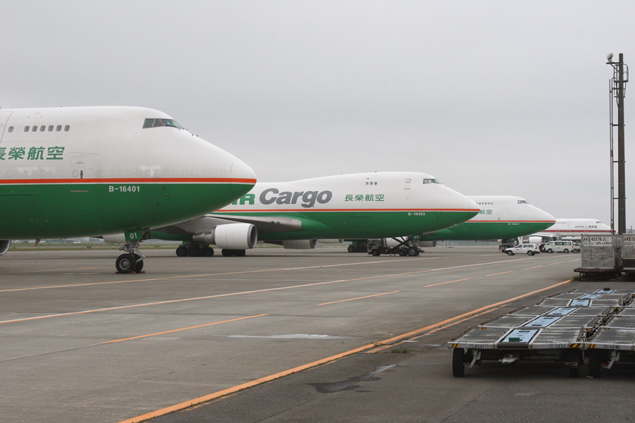 18日は前日に飛来し、ステイしていたエバーカーゴのB747-400Fが3機(B-16401、B-16407、B-16483)が出発していきました。