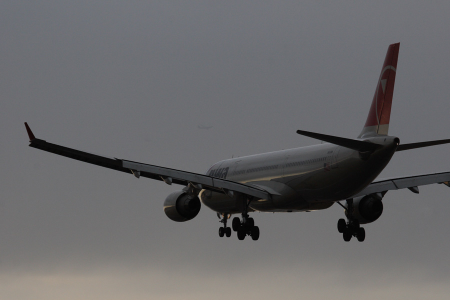 2日の帰国便が飛来、今回も旧塗装機でした。