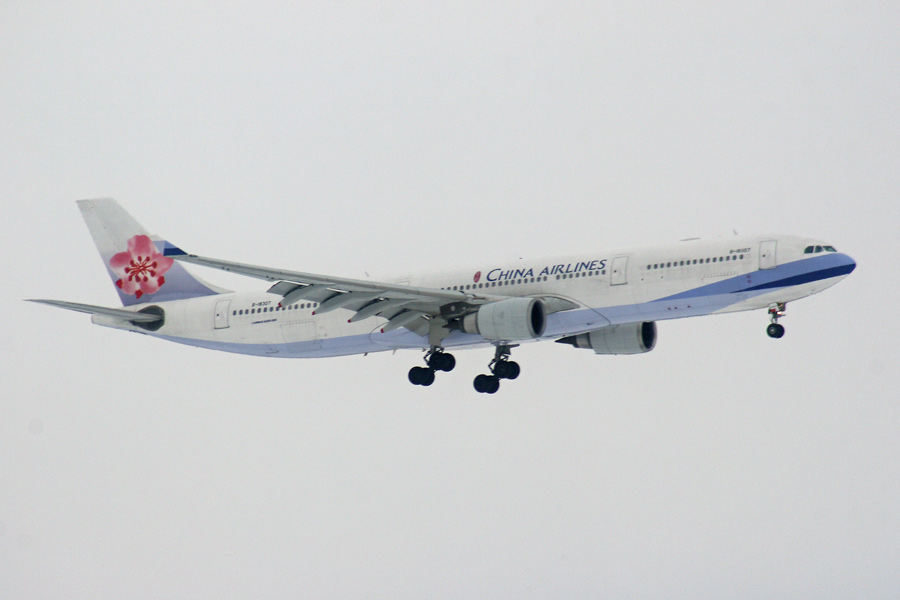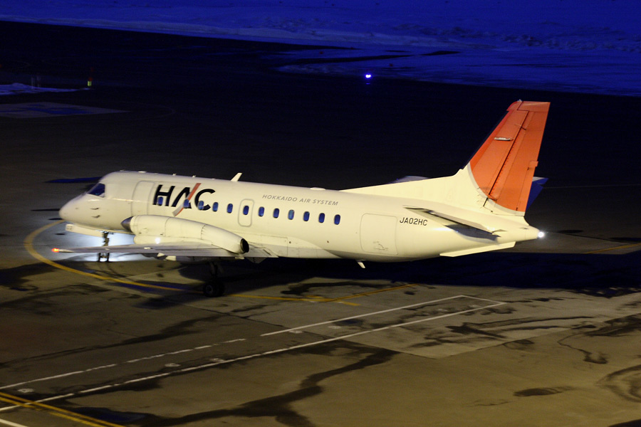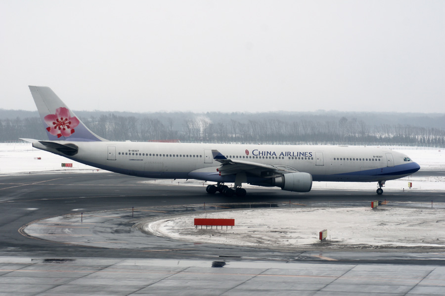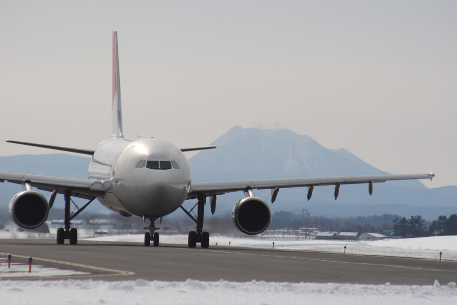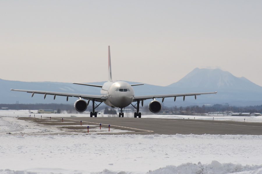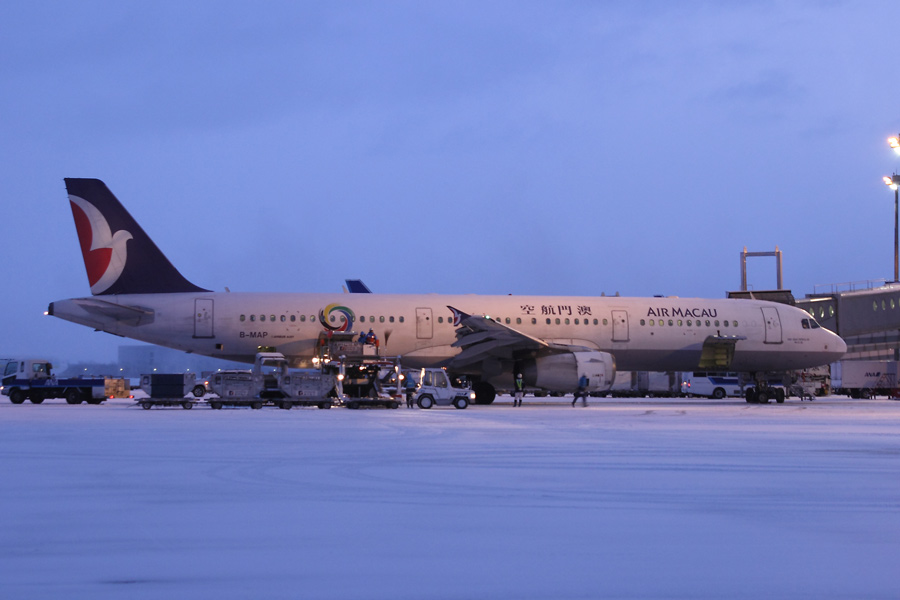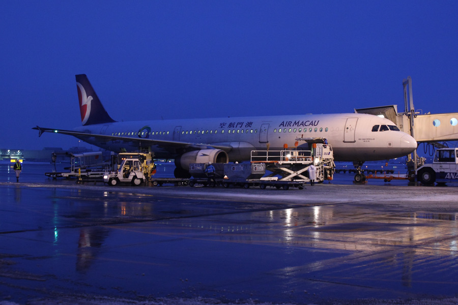 吹雪で除雪が入り、RWYが一本クローズとなった為、遅れて到着したエアマカオ。