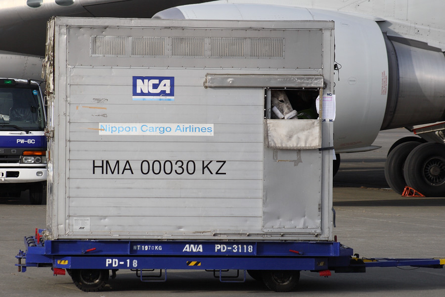 シカゴからアンカレッジ経由で飛来、積荷である競走馬を降ろし、成田へ向かいました。
