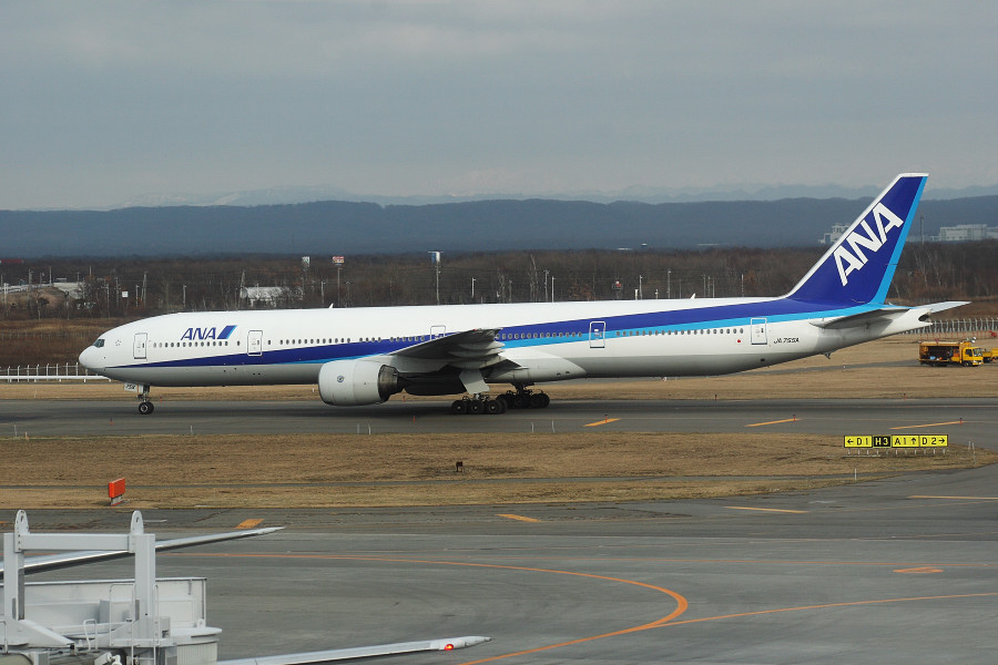 プッシュバックしたものの、再びスポットへ戻ったANAのB773(JA755A)。