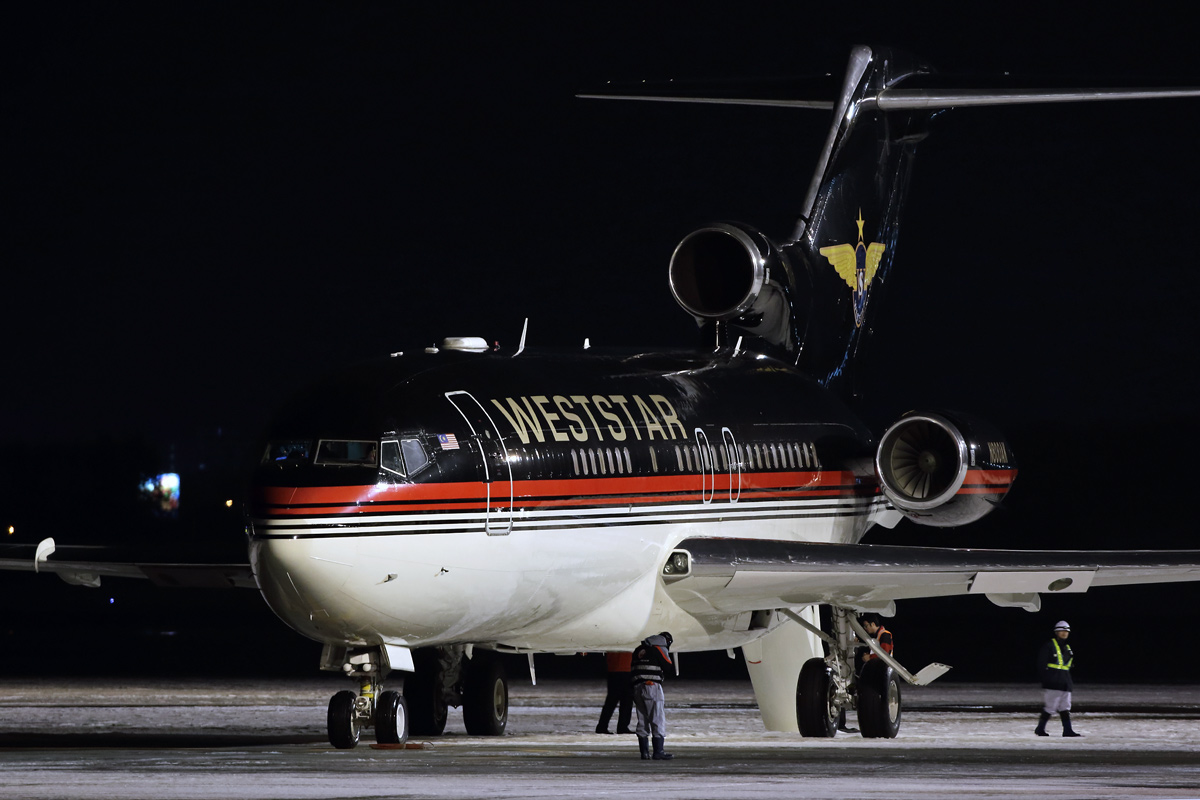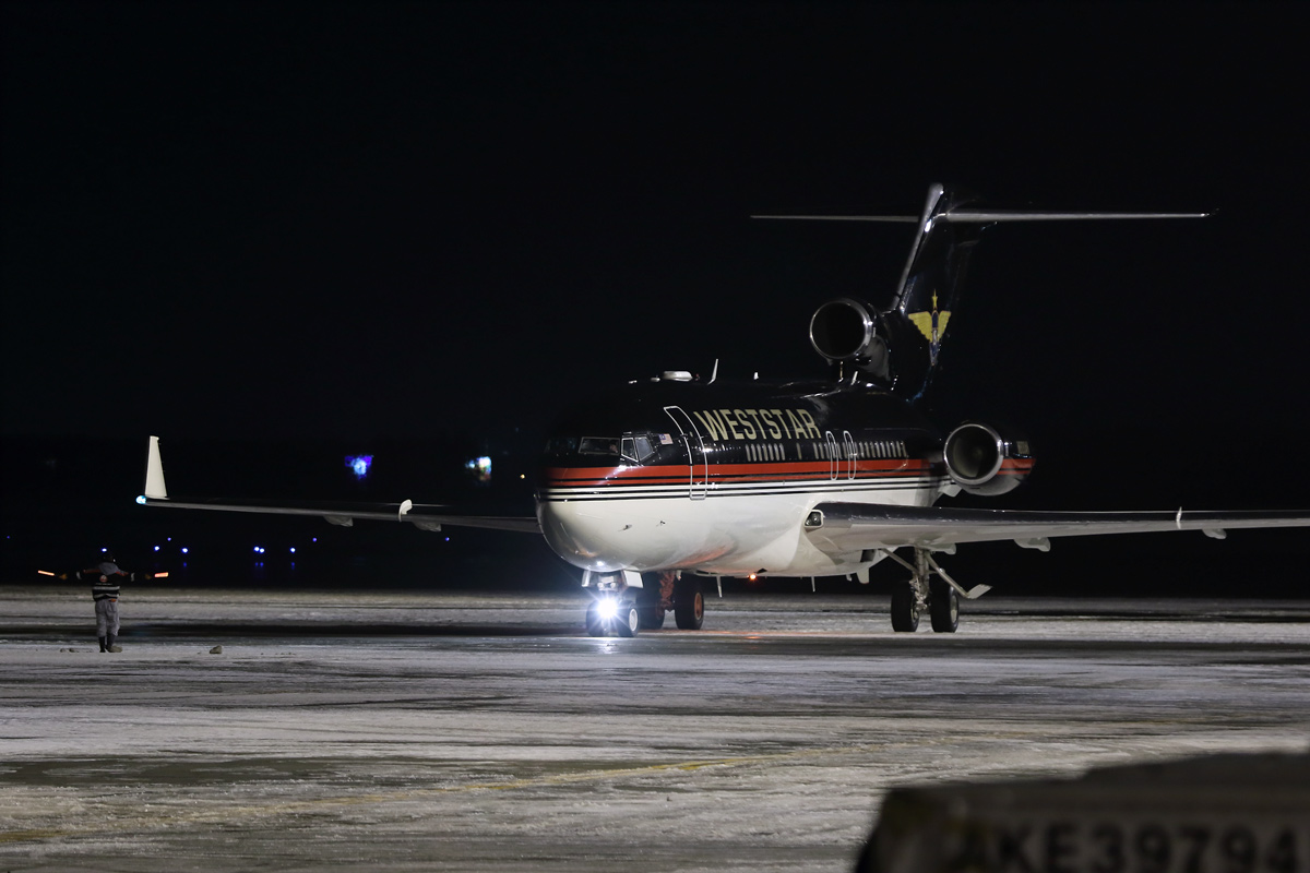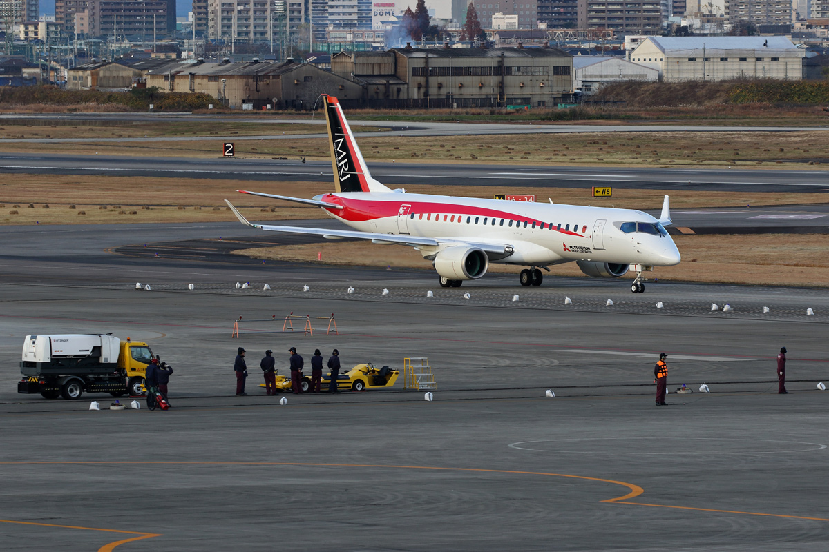 機内から出てきたのは、緑のつなぎを着た自衛隊の方々。