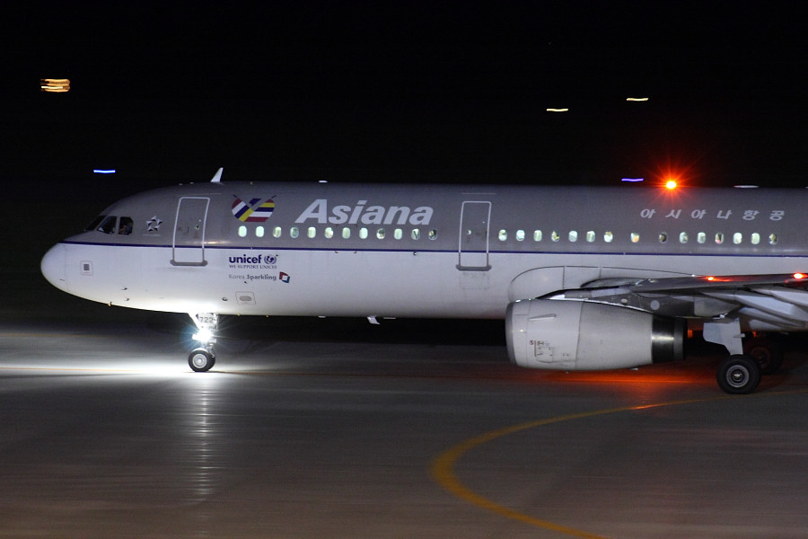 OZ1543便でソウルから飛来した、アシアナのA321-200(HL7722)。