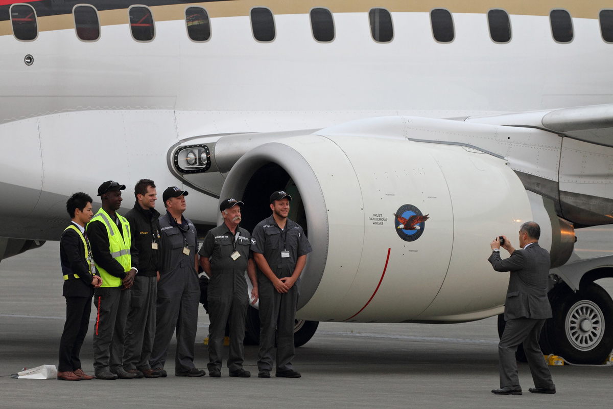 5:51、タラップ車が接続され、関係者の方々が続々と機体周りに到着。