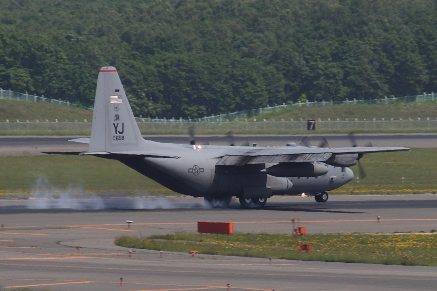 降りてきたのは、30日同じアメリカ空軍のC-130(YJ 74-658)が飛来しました(^_^;)