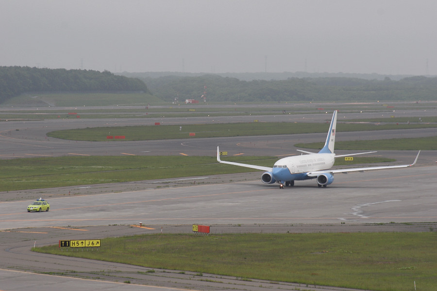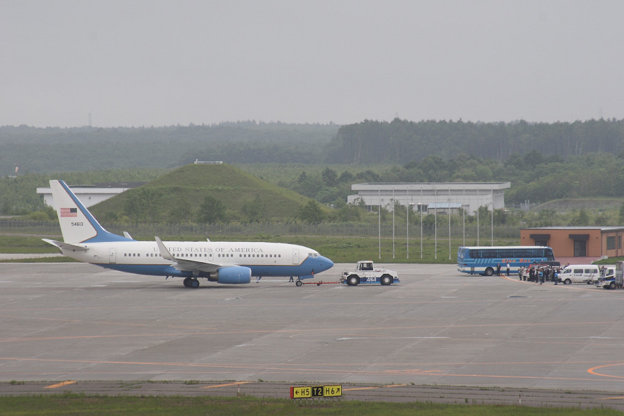 サミットを前に、プチエアフォースワン(笑)とも言えるような塗装の機体が飛来したのには、本当に驚きでした(^_^;)