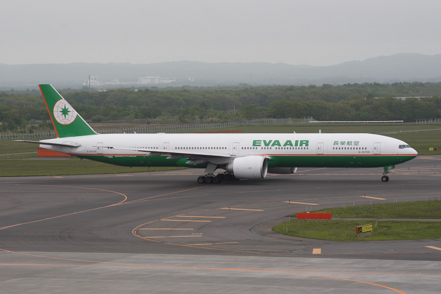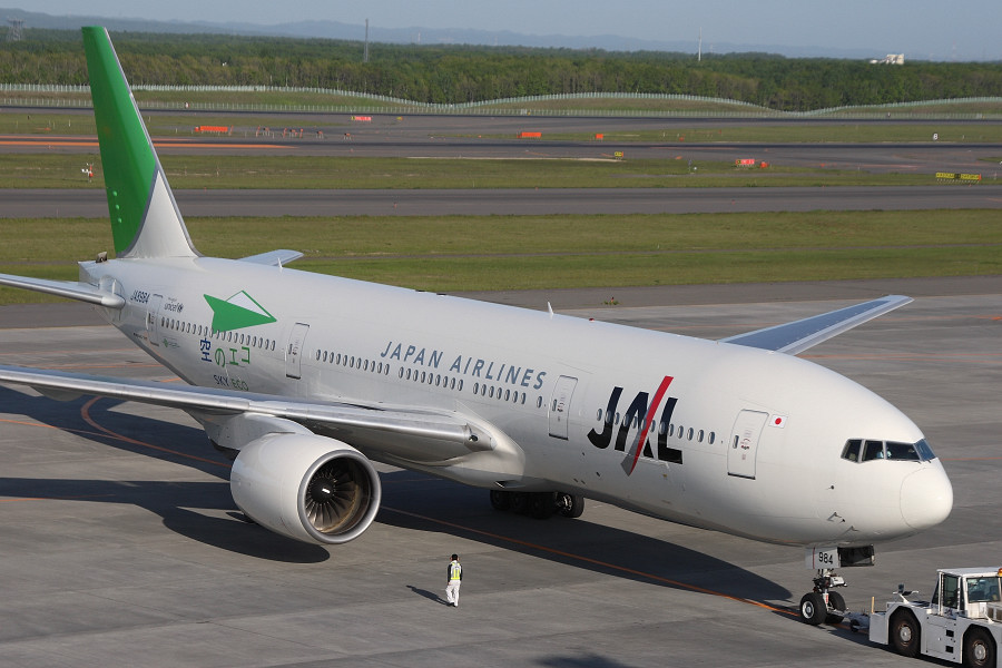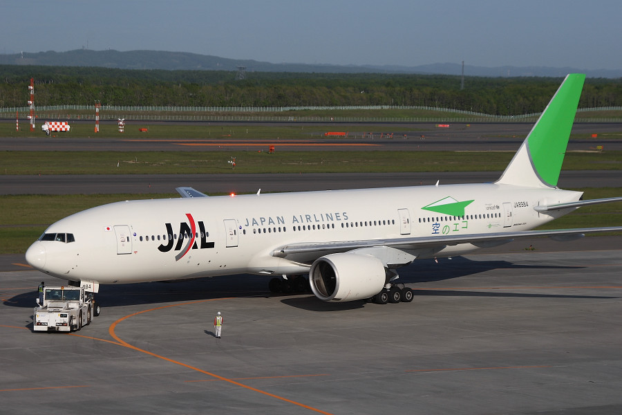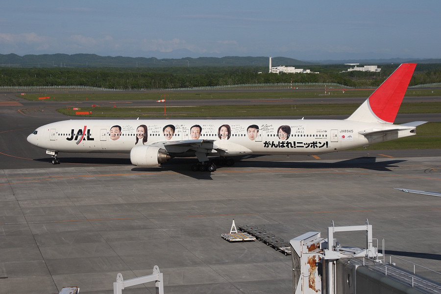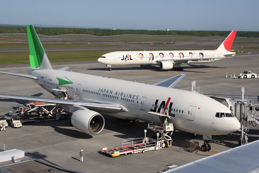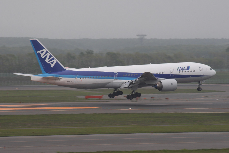 6月から富山~千歳~仙台~千歳~富山路線に投入されている、国際線機材のB777-200ER。