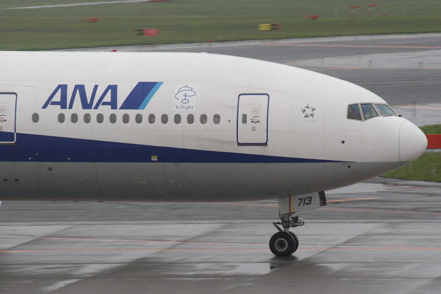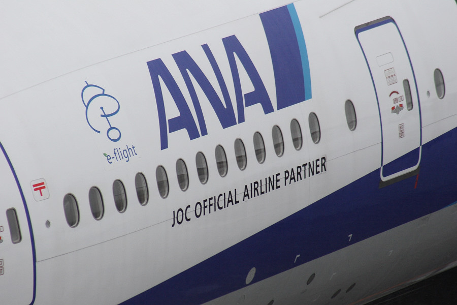 ANA機に突如(笑)登場した「e-flight」ステッカー。