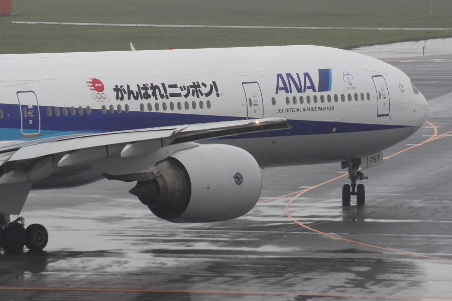 先ほどはJALの「がんばれ!ニッポン!」でしたが、今回はANAバージョンの、JA757Aです(^_^)