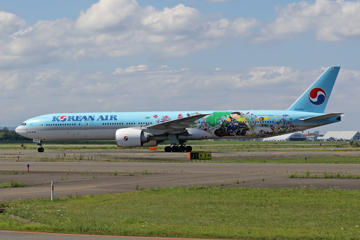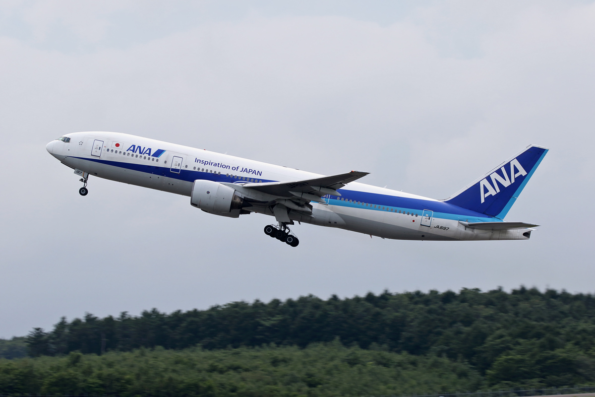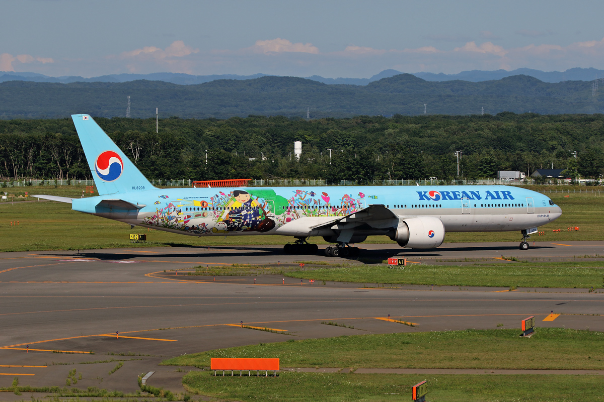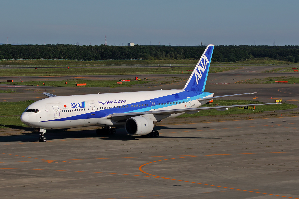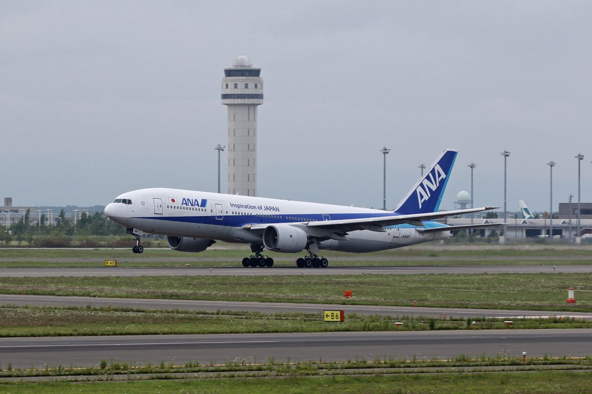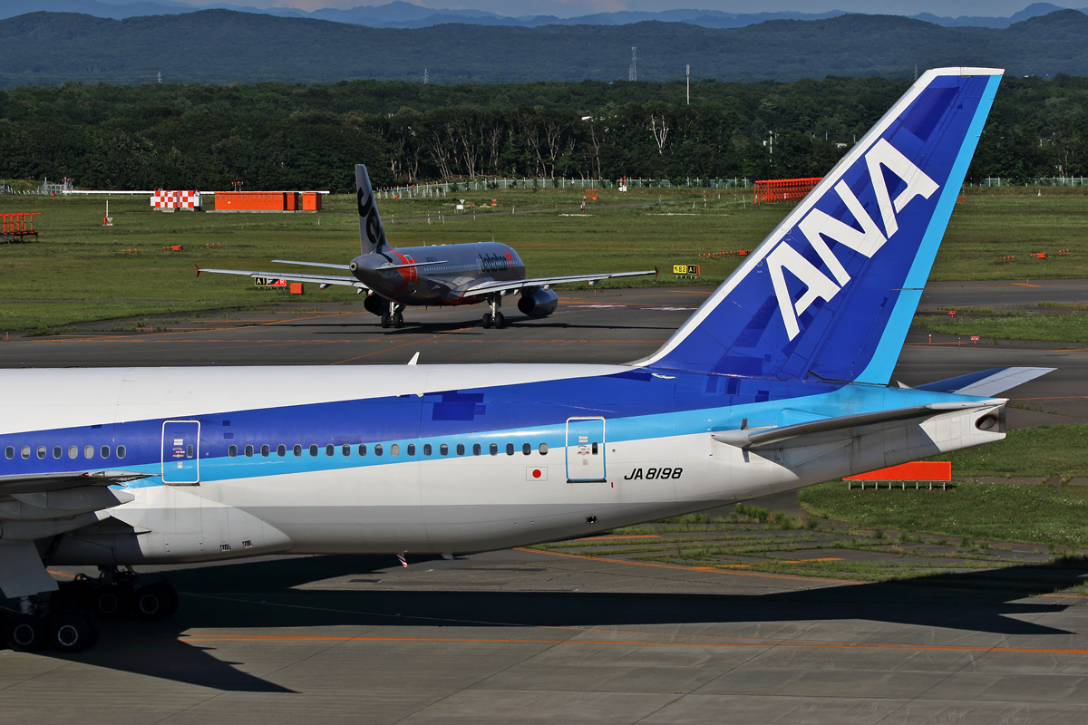盆休みの帰省の帰り道に新千歳に寄り道すると、ANAのB777初号機のJA8197が離陸。