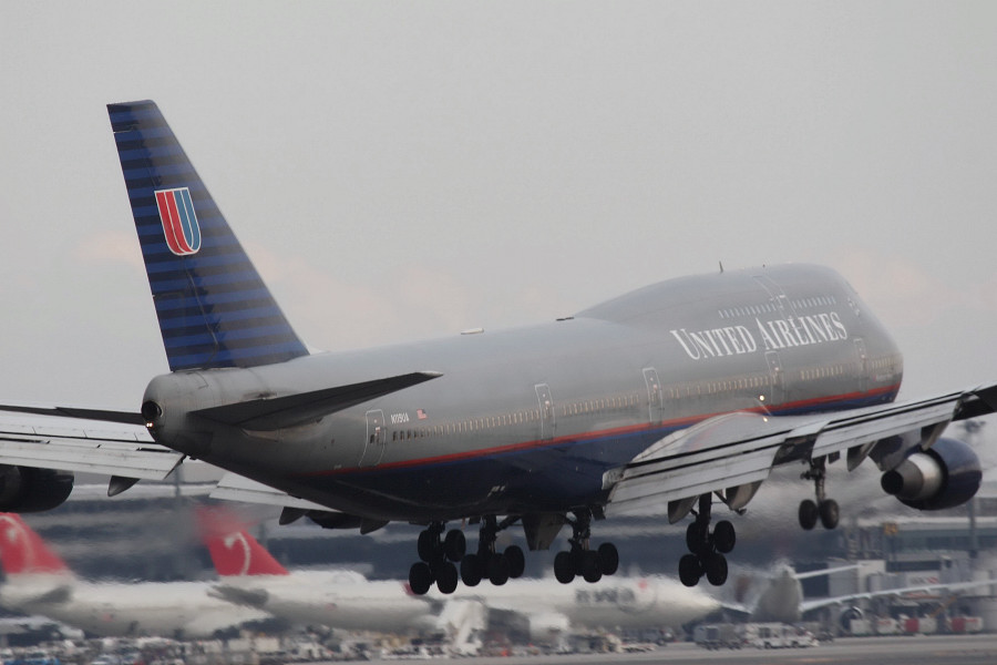 ユナイテッドの旧塗装機、B747-400(N119UA)。