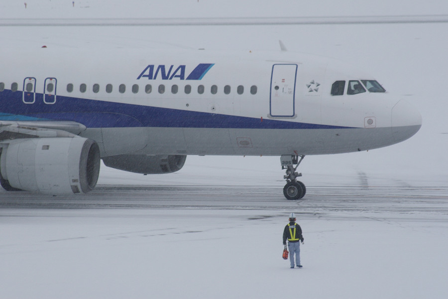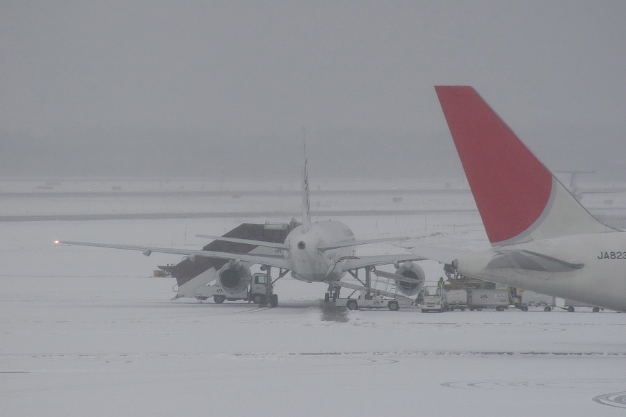 9時に空港に到着するも、雪の為運航が荒れていました(>_<)