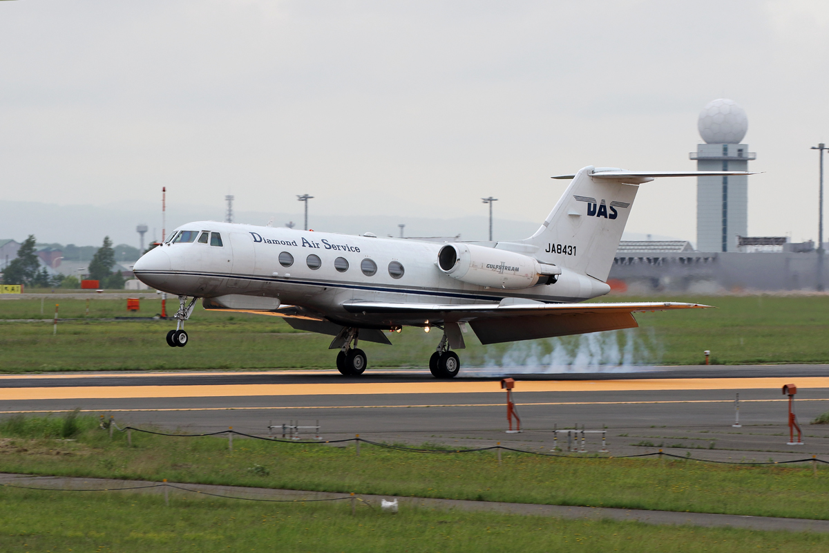 この機体、経歴も面白く1972年7月に当時の運輸省(航空局)が導入。高々度用飛行検査機として活躍後、ダイヤモンドエアサービスへ移籍。