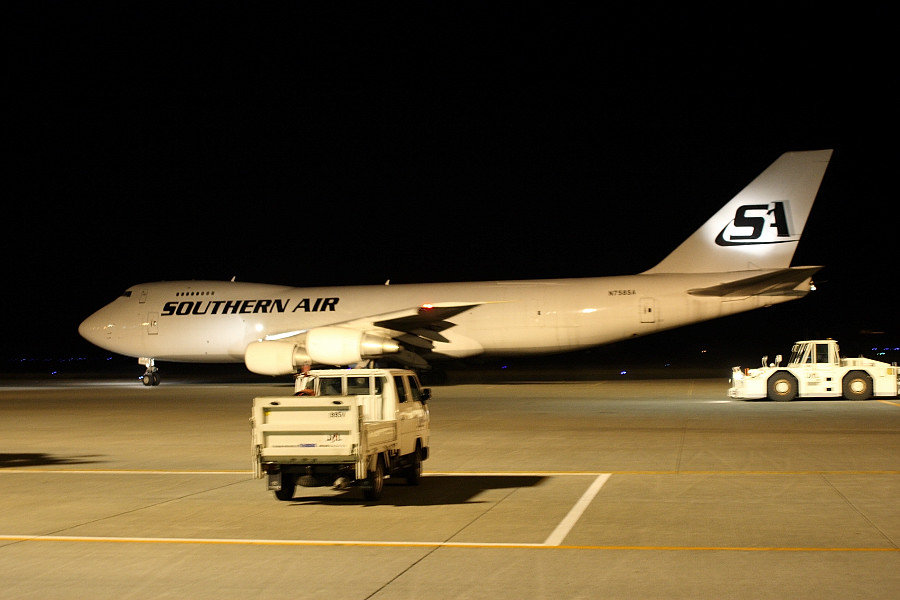 SOO207便でアンカレッジから飛来した、サザンエアのB747-200F(N758SA)。