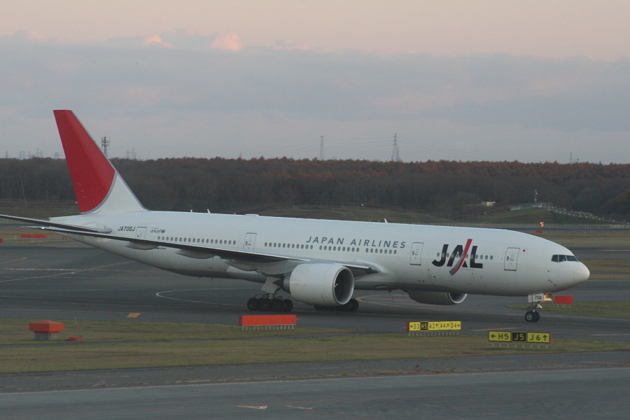 JL4707/4708便で関空から飛来した、B777-200ER(JA706J)。